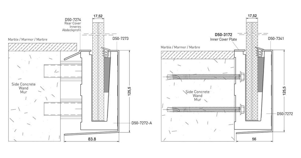 - Tip de instalare: pantofi de bază de 15 cm și 30 cm / profil din aluminiu pe toată lungimea