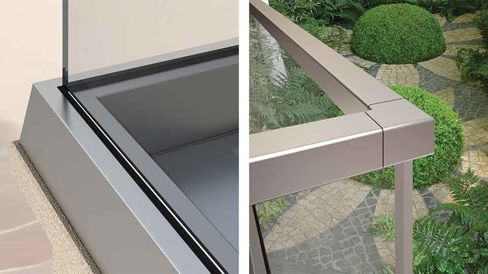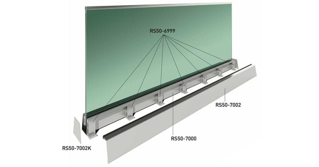 Sistemele de balustrade BTS Aluminium Glass creează o senzație de nemărginire și elimină limitele vizibile care micșorează spațiul. Balustradele din sticlă sunt sigure și fiabile, fără a fi grele și masive. Sistemul RS50 are suporturi de bază scurte de 5 cm unde vă fixați mai întâi la sol. Profilul de aliniere liniar netăiat trece prin console și asigură ca sticla să rămână drept. Cu această nouă tehnică, greșelile din timpul instalării dispar. RS50 aduce estetică și siguranță clădirilor dumneavoastră la standarde înalte, cu opțiunile de montare superioară și tip încorporat.