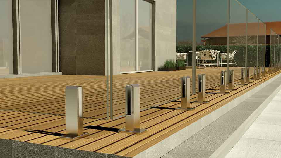 Chipurile de sticlă model V320 Square sunt utilizate în mod obișnuit pentru crearea de zone împrejmuite în jurul intrărilor, alei, pardoseli sau piscine; Aceste soluții economice de balustradă din sticlă fără cadru reprezintă o modalitate ușoară și eficientă de a crea design-uri impresionante pentru clădiri rezidențiale și comerciale.