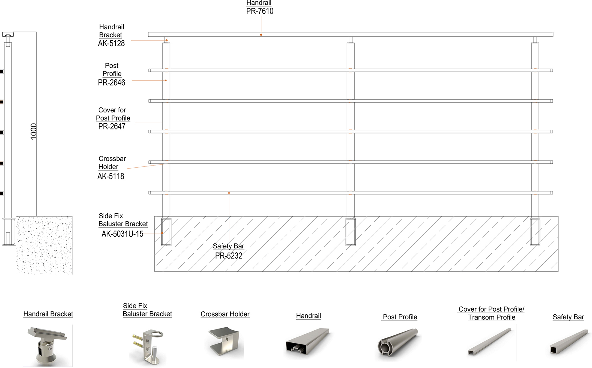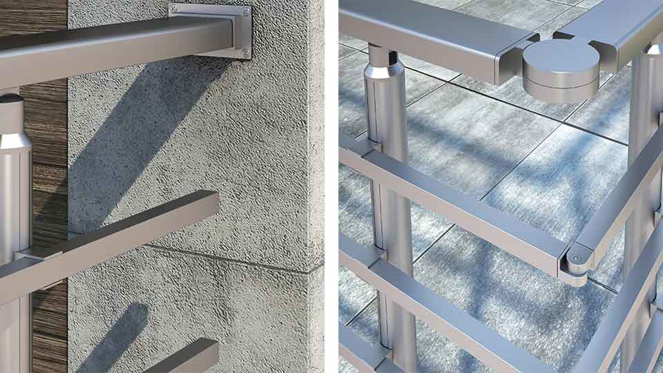 BTS CL10 este balustrada cu montare laterală cu stâlpi de balustradă de tip rotund și profil de balustradă de tip pătrat. Diferite tipuri de suporturi laterale de fixare vă ajută să conectați stâlpii de balustradă la marginea balconului. Suporturile de fixare laterale mai lungi oferă mai multă rezistență și robustețe. Cu componentele ergonomice de fixare a balustradei, veți combina cu ușurință profilele pătrate și rotunde între ele. Balustradele laterale ofera mai mult spatiu balcoanelor, teraselor tale.
