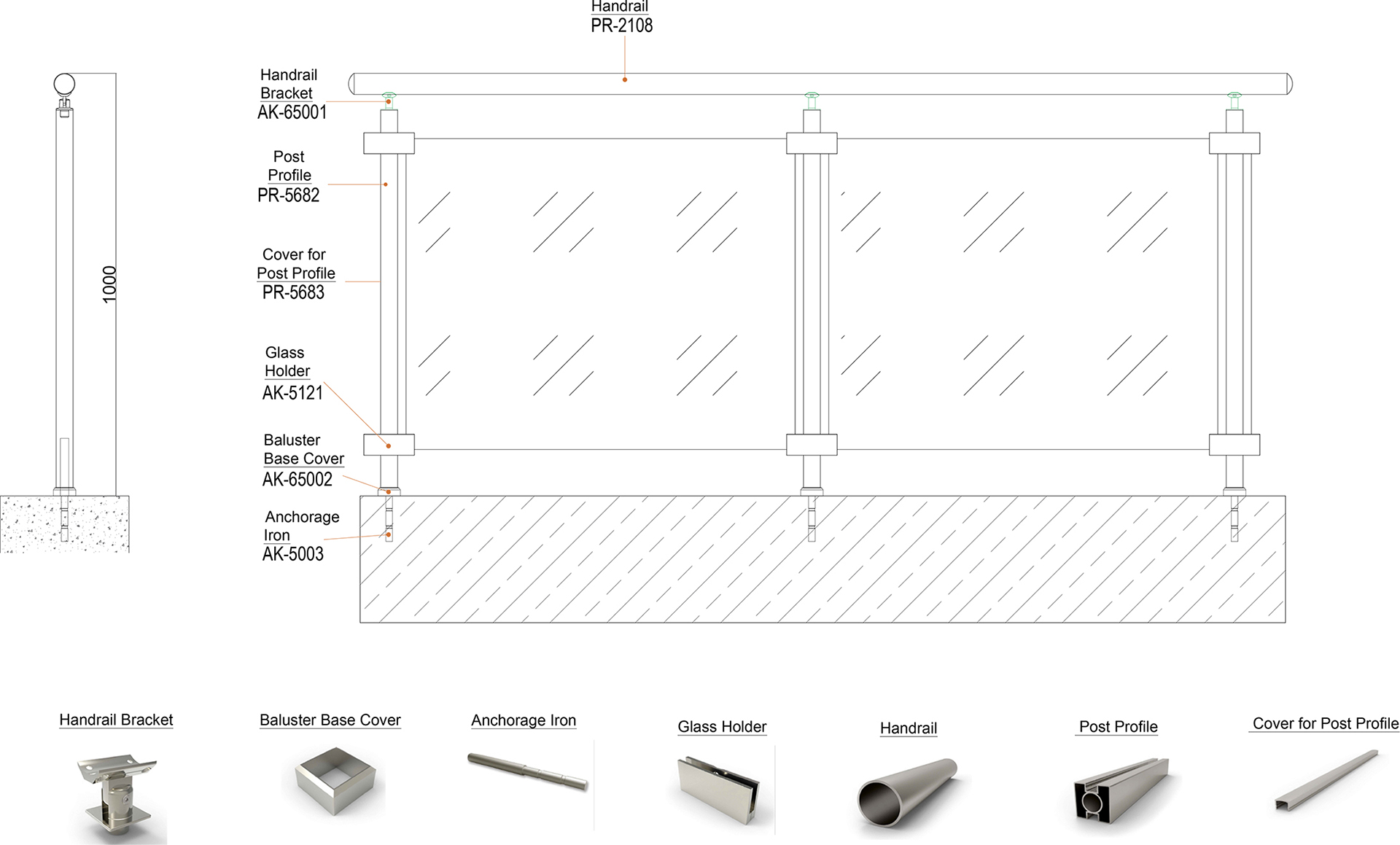 Balustrada din aluminiu CL13 este combinația dintre stâlp de balustradă pătrată și profil rotund de balustradă cu suport de sticlă cu design special. Suportul special de sticlă de tip orizontal este utilizat în acest sistem atât în partea de sus, cât și în partea de jos a stâlpului. Designul minimal și estetic al acestui suport de sticlă vă face balustradele diferite. Această fixare specială pentru sticlă AK-5121 ține sticlă de 4+4 mm și este cea mai ușoară aplicație de pe piață. Diferite tipuri de fixare la pământ, conectori de colț, conectori de perete sunt disponibile în toate sistemele de balustrade BTS!