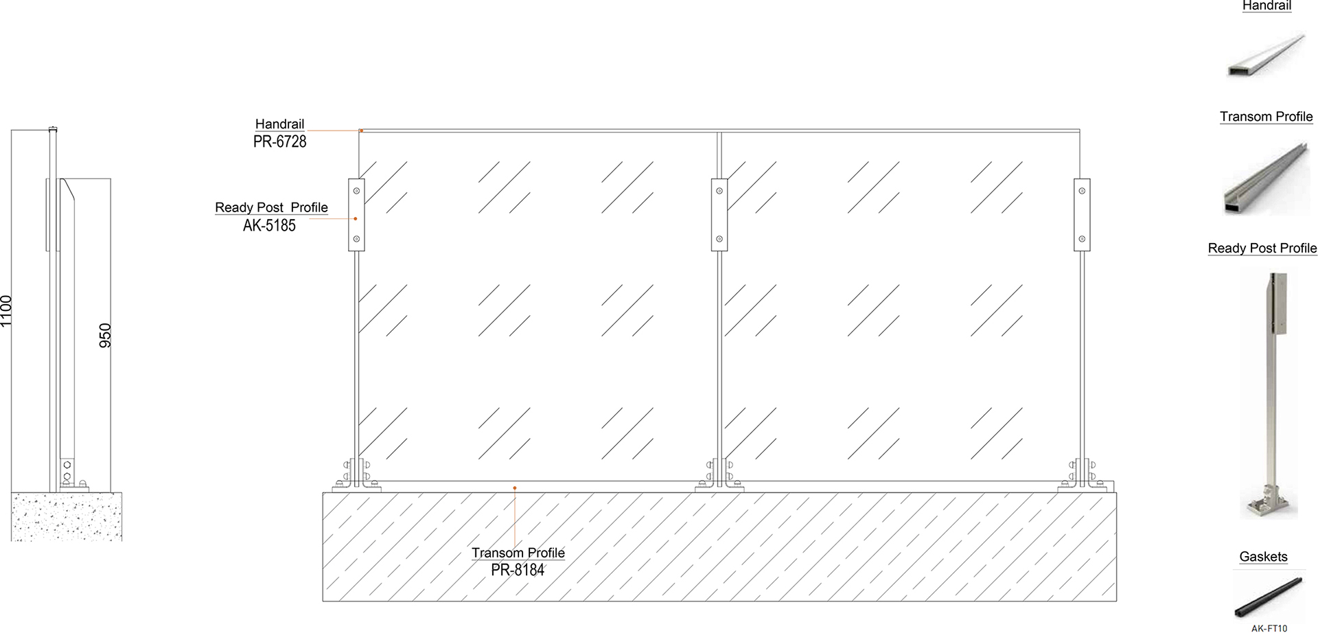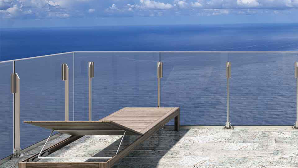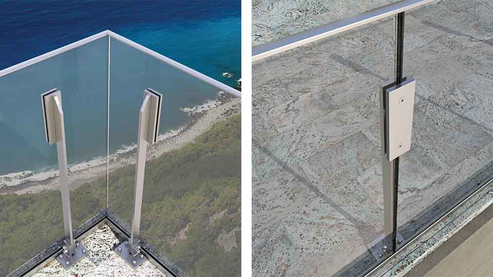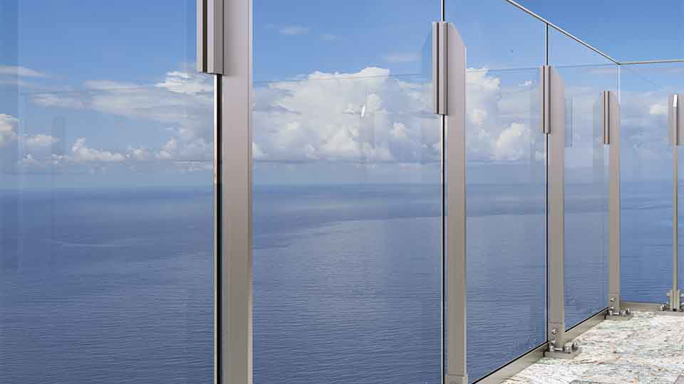 BTS LX17 este sistemul de stâlp de balustradă cu o singură lamelă cu design minimal. Acești stâlpi de balustradă sunt plasați între sticlă. Suporturile speciale pentru sticlă fixează sticla de sus, iar sticla este plasată pe un profil de bază din aluminiu.