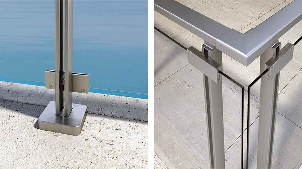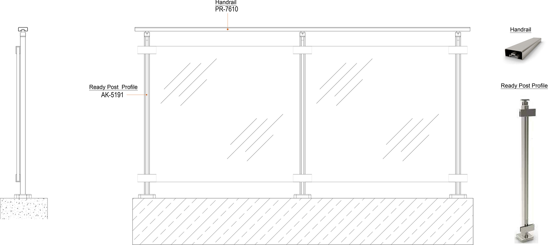 Seria BTS LX are un sistem de stâlp de balustradă cu lamelă dublă cu diferite tipuri. Sistemul are stâlp de balustradă gata făcut cu înălțimea de 110 cm și toate componentele necesare fixate pe el. LX18 are suporturi de sticlă preinstalate pe el și puteți regla poziția suporturilor de sticlă cu spațiul dorit.