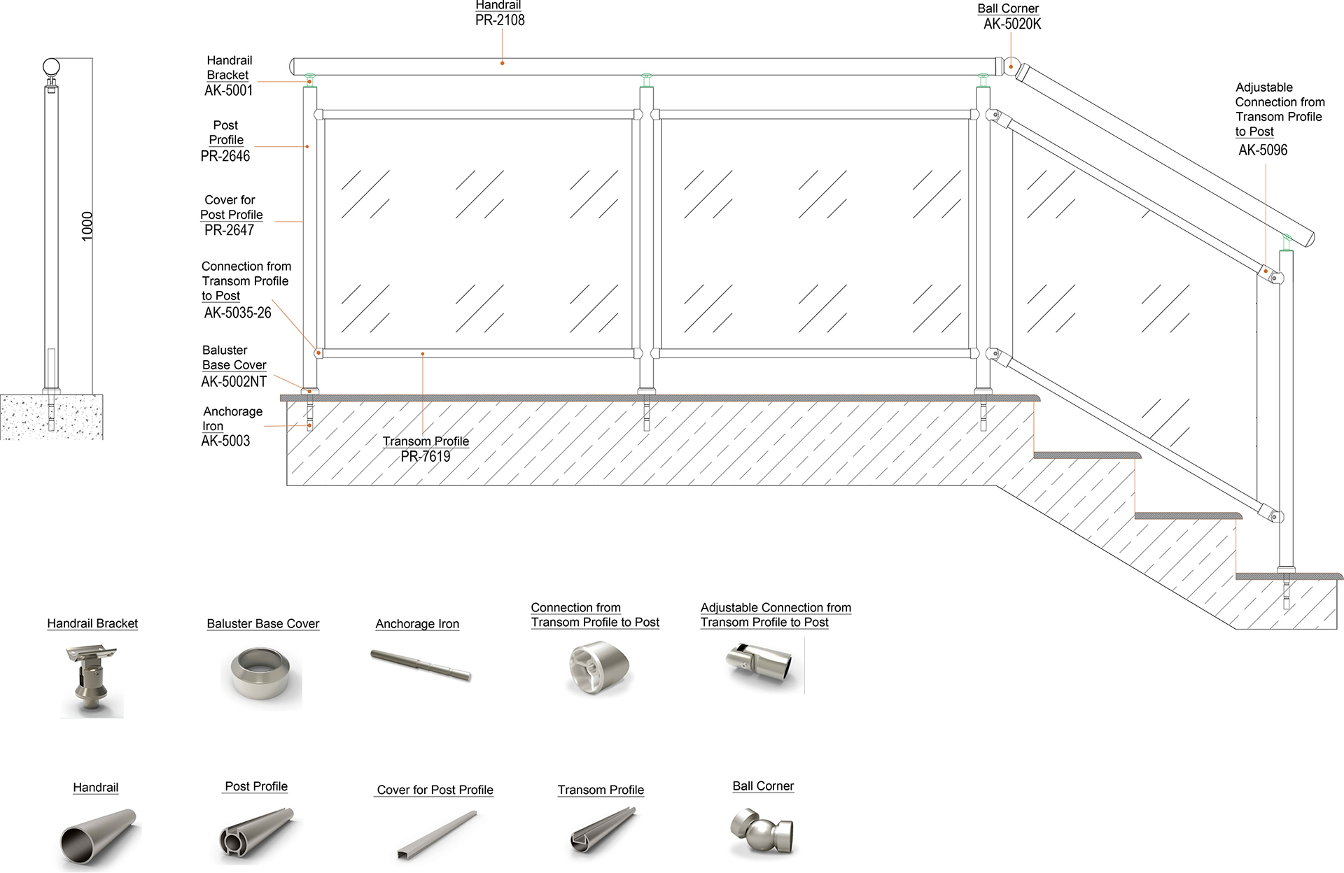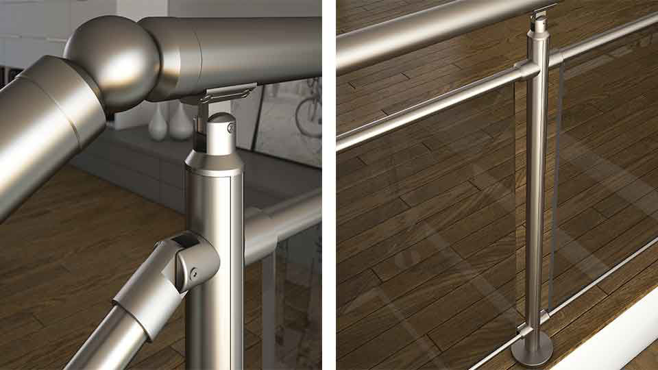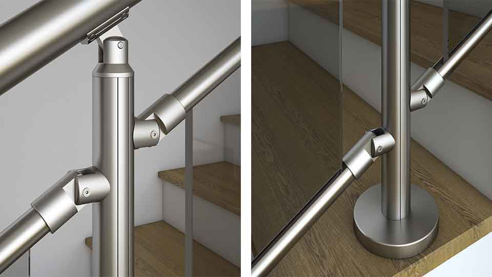 Combinația de balustrade din aluminiu și sticlă este întotdeauna frumoasă! Balustradele metalice de formă rotundă sunt întotdeauna populare, iar sticla îmbogățește designul ca întotdeauna. Cu componentele speciale de fixare, puteți instala cu ușurință balustrada scării care este de tip sticlă. Fixările reglabile pentru suportul profilului mențin profilul orizontal stabil și menține sticla în interiorul acestuia. Poate fi folosit atat in zone plate cat si in scari. Cu diferitele tipuri de fixare la sol, vă puteți fixa balustradele pe orice tip de podea, cum ar fi beton, lemn, marmură.