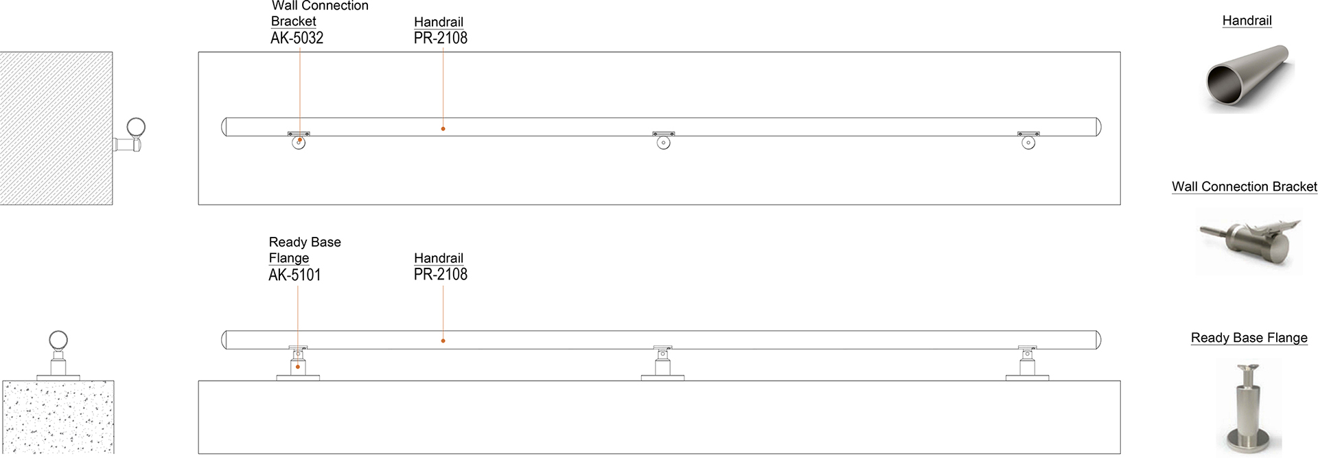 Balustradele de perete sunt întotdeauna foarte importante pentru un plus de siguranță. În toate zonele publice, spitale și zone comerciale, balustradele de perete sunt o necesitate. Sistemul BTS RL16 are diferite tipuri de accesorii din aluminiu pentru a crea diferite modele de balustradă de perete. Accesoriile de tip rotund și pătrat sunt disponibile pentru profilele din aluminiu rotunde și pătrate pentru balustradă. Suporturi speciale precum AK-5101 sunt de asemenea disponibile pentru balustradele parapetului. Fixările de perete reglabile vă ajută să reglați înălțimea profilelor de balustradă din aluminiu.