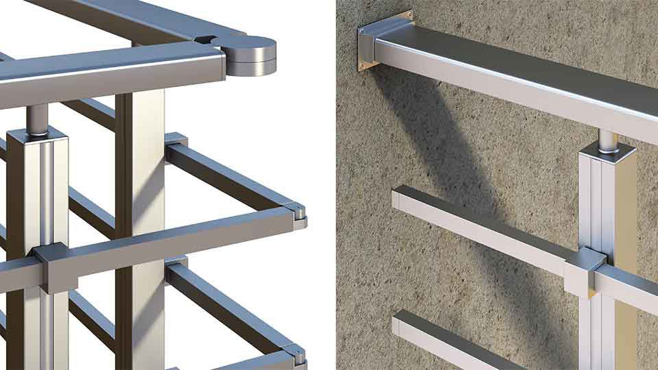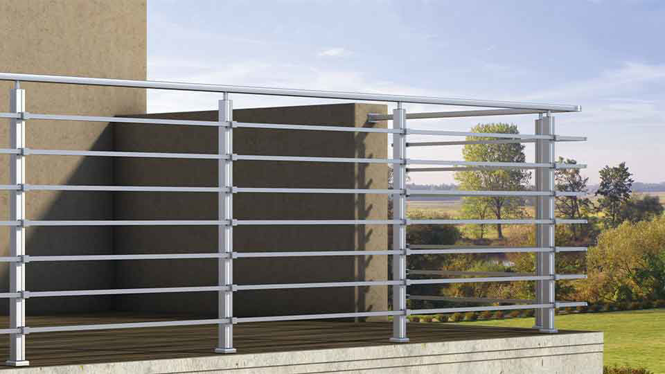 BTS Balustrade din aluminiu cu design minimal și în secțiuni rotunde, pătrate și dreptunghiulare. Potrivit pentru balcoane și scări și ideal pentru reședințe, precum și pentru facilități hoteliere. Balustrada din aluminiu de tip pătrat BTS SL10 are design orizontal cu bare de siguranță din aluminiu de 17x17mm sau 14x14mm. Stâlpi de balustradă pătrați întăriți de 40×40 oferind robustețe și stabilitate.