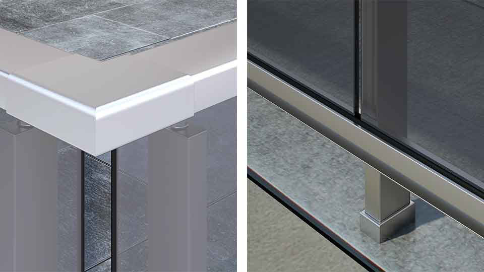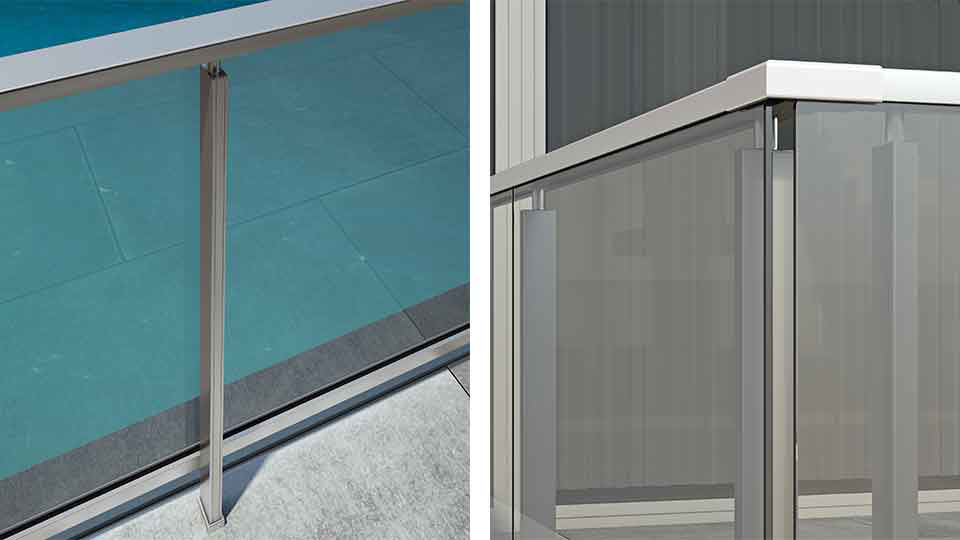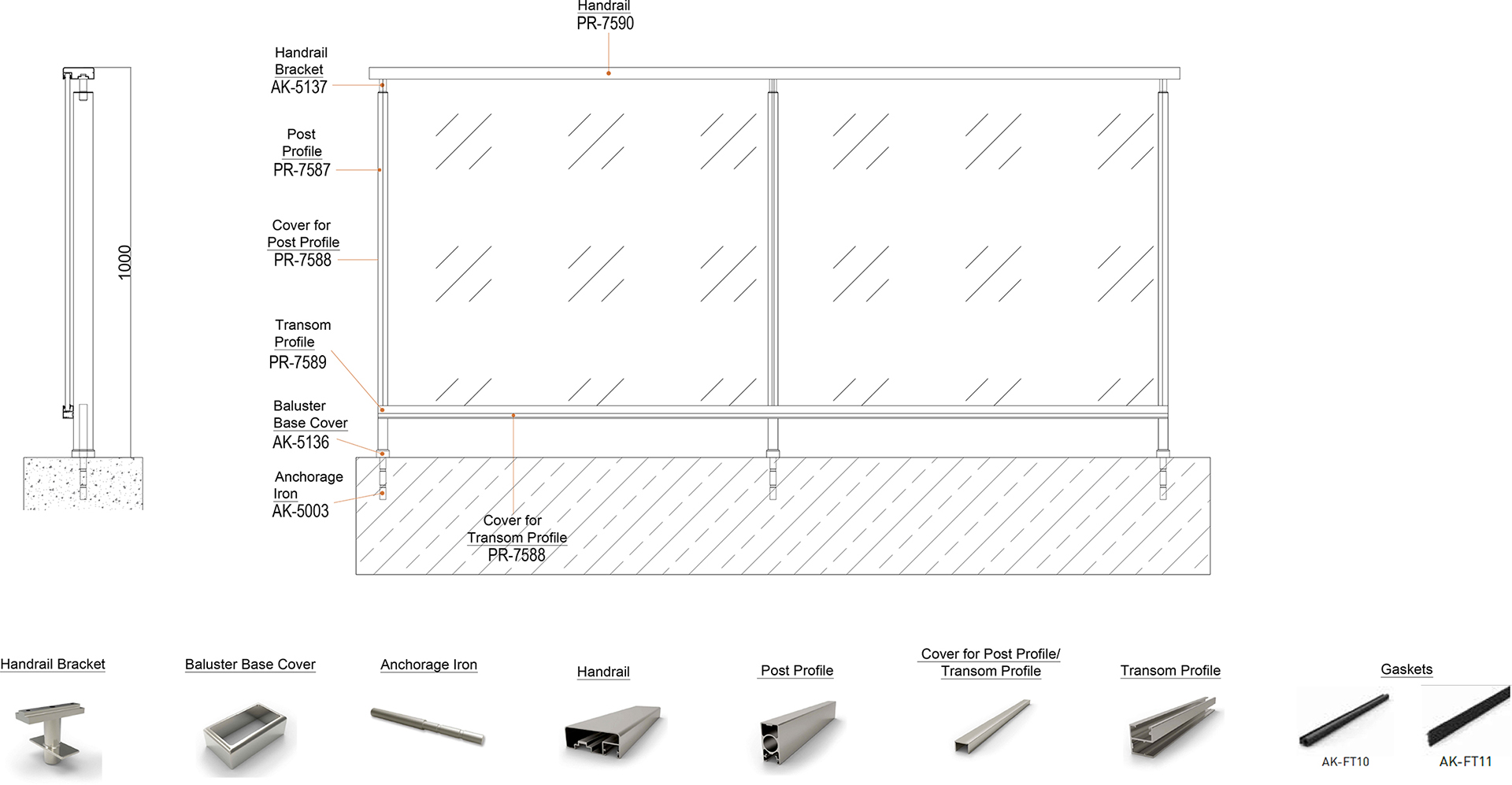 Sistem de balustrada din aluminiu cu geam frontal! Sistemul are stâlp de balustradă de 25x50mm și profil de balustradă din aluminiu de 80x30mm. Stalp de balustradă din aluminiu este fixat cu lungimea dorită a ancorelor la sol cu ajutorul ancorelor chimice. Sticla este plasată și fixată între profilul de bază și profilul balustradei care are un canal special cu garnituri de cauciuc pentru a preveni spargerea sticlei. Sunt disponibile toate componentele necesare, cum ar fi conectorul de perete, conectorul de colț, capacul de capăt și cuplele.